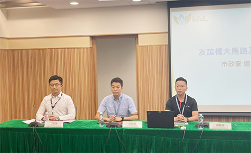 市政署及交通事務局昨日下午3時半在黑沙環政府綜合服務大樓三樓舉行新聞發佈會,介紹友誼橋大馬路及周邊道路重鋪新型瀝青工程及臨時交通安排,由市政署道路處代處長梁振榮、職務主管謝駿雄,以及交通事務局協調處代處長程凱健主持。