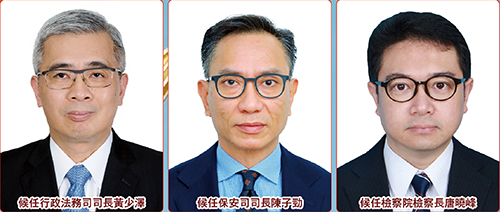 新任行政法務司司長、保安司司長及檢察長簡歷如下: