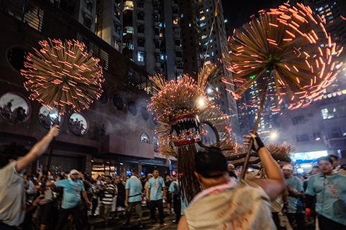 【本報綜合報道】據香港中通社10月5日消息,香港一年一度的大坑舞火龍當日起一連三天舉行,長達67米的火龍由近300人舞動,穿梭於香港銅鑼灣街巷。