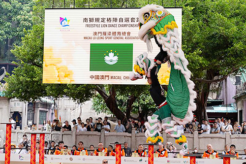 備受矚目的“南獅規定樁陣自選套路”賽事於10月4日上午假媽閣廟前地精彩上演,14支來自世界各地的醒獅勁旅施展渾身解數,於高樁上完成驚險而優雅的高難度動作,令全場觀眾屏息喝采。最終,中國龍獅運動協會 – 廣東省佛山市南海黃飛鴻中聯電纜武術龍獅協會憑精湛技藝與默契奪得“獅王”寶座,而新加坡藝威體育會及緬甸龍的傳人龍獅團則分別勇奪亞、季軍。