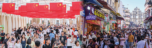 根據旅遊局公佈的國慶中秋長假訪澳旅客初步數據,8天假期入境旅客總數達114.4萬人次,日均14.3萬人次,較2024年及2019年國慶節假期的日均旅客量分別上升1.9%及2.8%,成為有統計以來國慶節假期最高日均旅客量。入境總旅客中,內地旅客為94.3萬人次、香港旅客12.8萬人次、台灣地區旅客1.6萬人次,以及國際旅客5.7萬人次;其中,日均內地旅客量為11.8萬人次,較2024年國慶節假期日均11.7萬人次上升1.1%;國際旅客共5.7萬人次,日均約7,200人次,較去年國慶假期日均約5,500人次上升29.9%。