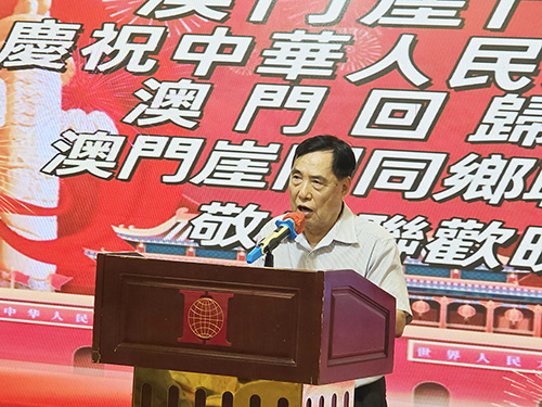 鍾德智致辭時表示,崖門同鄉會成立16年來,在特區政府的關懷下,特別是在永遠榮譽會長陳明金先生大力支特下,通過廣大居澳崖門鄉親的共同努力,克服了無數的困難和挫折,會務不斷發展,隊伍不斷壯大,把同鄉會打造成服務鄉親的平台和溝通家鄉的橋樑,全心全意為鄉親服務,解決鄉親在工作和生活上遇到的各種各樣困難,如家庭團聚、求職、求學、申請困難補助、申請公共房屋、調解勞資糾紛等。他寄語全體鄉親,尤其是年輕一代,團結一致,萬眾一心,為澳門、崖門建設貢獻力量。