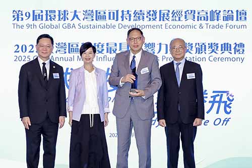 【本報訊】銀河娛樂集團(下稱“銀娛”)日前於香港舉辦的“第9屆環球大灣區可持續發展經貿高峰論壇暨2025大灣區年度最具影響力大獎頒獎典禮”上,獲頒“2025大灣區年度最具影響力大獎”,成為首間獲得此項殊榮的澳門綜合旅遊休閒企業。銀娛董事程裕昇出席頒獎禮及代表銀娛接受獎項。