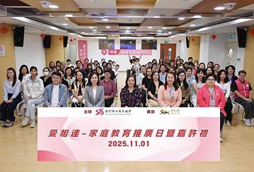 【本報訊】由婦聯總會與美高梅合辦的“愛‧相連”家庭教育合作計劃,日前在婦聯樂滿家庭服務中心舉行“愛‧相連”家庭教育推廣日暨嘉許禮。社會工作局社區協作處處長林佩嫦、美高梅助理人力資源事務總監劉芍芝、婦聯總會副會長黃潔貞等出席活動。
