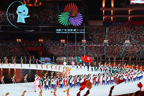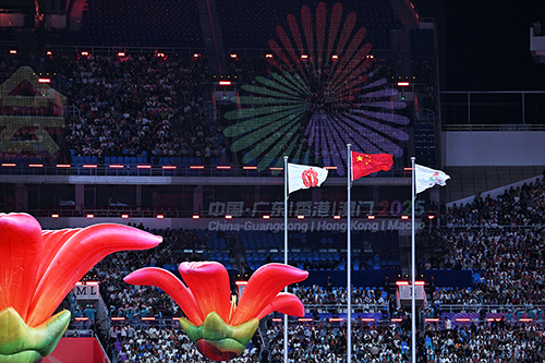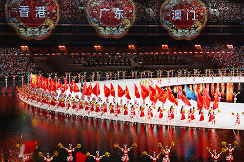 9日晚的廣東奧林匹克體育中心華燈璀璨,氣氛熱烈。這是首次由粵港澳三地聯合舉辦的全國運動會。