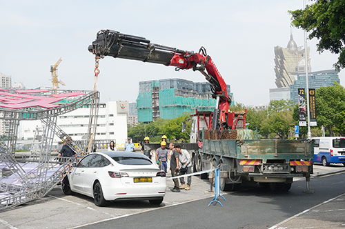 【本報訊】西灣湖廣場前日發生棚架倒塌事件,幸事件中無人受傷。據悉,有關棚架為本週五開鑼的澳門美食節大型招牌金屬鋼架。警方跟進處理後,懷疑棚架是被風吹倒。旅遊局回覆傳媒查詢表示,在接獲事故通報後,已即時派員赴現場,並與主辦單位澳門餐飲業聯合商會代表及相關工程公司溝通了解跟進。主辦單位承諾,將全面檢查現場所有搭建物結構安全,優化抗風及穩固設計,防範類似事件再次發生,並妥善辦理相關保險理賠手續,按要求提交事故報告及後續跟進報告。