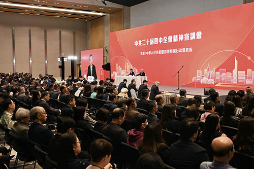 宣講會上,祝衛東表示,中共二十屆四中全會擘畫了我國未來五年的發展藍圖,是新的歷史起點上乘勢而上、接續推進中國式現代化建設的又一次總動員、總部署。“十五五”時期在基本實現社會主義現代化進程中具有承前啟後的重要地位。我國經濟基礎穩、優勢多、韌性強、潛能大,長期向好的支撐條件和基本趨勢沒有變,中國特色社會主義制度優勢、超大規模市場優勢、完整產業體系優勢、豐富人才資源優勢更加彰顯。要深刻領會“十五五”時期經濟社會發展的指導方針和主要目標,把握全會提出的“促進香港、澳門長期繁榮穩定”的豐富內涵和明確指向。希望香港社會各界抓住國家現代化建設的重大機遇,主動對接國家“十五五”規劃、粵港澳大灣區建設和高質量共建“一帶一路”等國家戰略,塑造經濟發展新動能新優勢,更好發揮香港連接祖國內地同世界各地的重要橋樑和窗口作用,更好融入和服務國家發展大局。