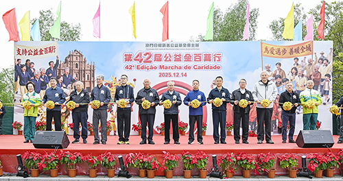 【本報訊】澳門日報讀者公益基金會主辦的年度慈善盛事“第42屆公益金百萬行”昨日上午舉行,逾4萬善長齊邁步共襄善舉,沿途龍獅起舞,各駐點樂隊演奏助興,多位國家金牌運動員助陣打氣,傳遞慈善公益的力量。公益基金會會長賀定一表示,今屆百萬行共籌得善款1,700多萬元,與往年數字相近。基金會將秉承“取諸社會、用諸社會、善款善用”的初心,將善款用於救助弱勢群體和困難人士。