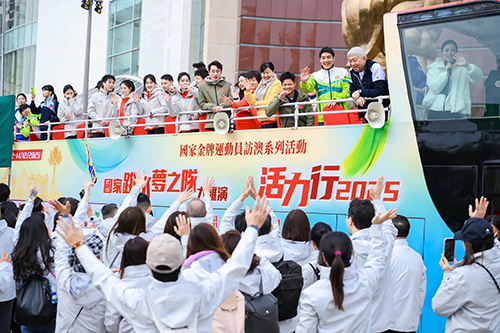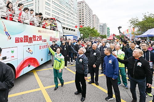 啟步儀式上,岑浩輝為大金龍點睛、簪花掛紅和灑聖水,隨後一眾主禮嘉賓金剪一揮,為百萬行拉開序幕,步行大隊在岑浩輝等主禮嘉賓帶領下前行。今年活動續邀請國家跳水隊代表團參加,領隊周繼紅、教練陳若琳及運動員陳藝文、昌雅妮、練俊傑、陳芋汐、王宗源、掌敏潔、盧為、陳佳、林珊、鄭九源、胡宇康、朱子鋒、白鈺鳴,與特邀的國家功勛運動員吳敏霞、陳艾森、何沖、蘇炳添、李小鵬、李珊珊等乘坐開篷觀光旅遊車為參加步行人士打氣。
