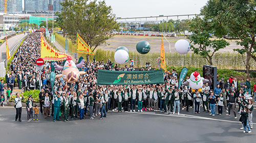 今屆百萬行的步行路線與上屆一樣,不經西灣湖廣場轉入消防局,改為經西灣大橋下行車道向媽閣方向前行,待步行至媽閣交通樞紐位置後右轉,再沿民國大馬路到媽閣上街,以媽閣廟前地為終點。昨早最低氣溫跌至13度左右,幸好天公造美,適宜戶外步行,參與活動的善長各自穿上印有各企業或機構、社團及學校的標誌、色彩繽紛的團服登場,精神抖擻,齊齊為慈善邁步。一如以往,警察銀樂隊續為百萬行起步打頭陣,童軍聯同本澳11所學校樂隊和濠江中學步操旗樂隊等,於隊伍行進中及沿途駐點演奏助興,鮮魚行總會亦出動九龍二獅近50名老中青少成員參演,駐點旅遊塔對面安全島獻演。