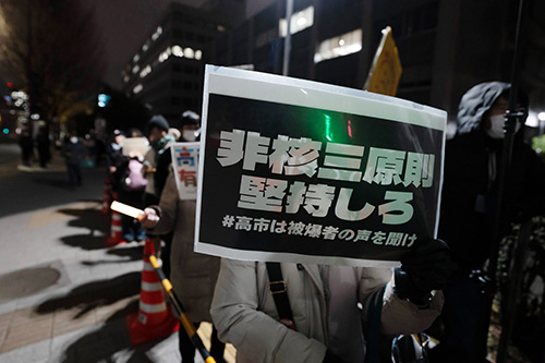 而日本民眾於23日晚在東京首相官邸前舉行抗議集會,要求高市早苗撤回涉台錯誤言論,並批評首相官邸負責安保政策的官員有關“擁核”的言論。