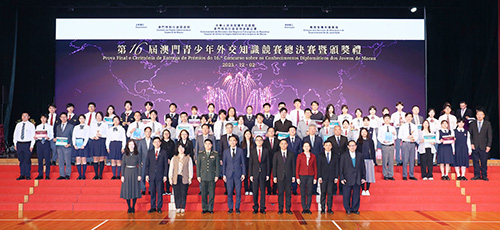 第16屆澳門青少年外交知識競賽獲獎名單:一等獎的學校包括廣大中學、培道中學、澳門浸信中學、澳門坊眾學校、澳門中華總商會附設青洲中學、聖保祿學校、嘉諾撒聖心中學、菜農子弟學校、鄭觀應公立學校、化地瑪聖母女子學校、聖若瑟教區中學第六校、新華學校、培華中學、聖若瑟教區中學第五校、陳瑞祺永援中學、同善堂中學、利瑪竇中學;二等獎的學校包括高美士中葡中學、氹仔坊眾學校、聖羅撒女子中學中文部、澳門工聯職業技術中學、慈幼中學、嶺南中學、海星中學、東南學校、中葡職業技術學校。