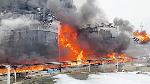 【本報綜合報道】據香港中通社12月25日消息,俄羅斯西南部克拉斯諾達爾邊疆區政府當日在社交平台上發文說,邊疆區黑海沿岸兩個儲油罐遭無人機襲擊起火。