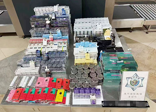 據澳門海關公佈,1月25日,海關人員在澳門國際機場客運站發現一名女性內地居民形跡可疑,經檢查,發現該名女子將37,150支香煙、1,090克煙絲及6,200支電子煙煙彈藏在隨身行李內,試圖將之偷運入境。