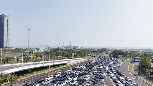 今年春節假期,內地旅客與港澳居民出行需求交織疊加,客流車流的雙向流動不斷推高港珠澳大橋的通行量。據廣東省交通運輸廳統計,春節假期前7天(2月15日至21日),港珠澳大橋車流量累計超16.12萬車次,日均約2.3萬車次,與去年春節同期相比增長20.47%;其中,“港車北上”通行車輛約8.12萬車次(約佔大橋車流量50.35%),日均約1.16萬車次,與去年春節同期相比增長26.10%;經大橋往來三地旅客約102.11萬人次,日均約14.59萬人次,與去年春節同期相比增長4.91%。