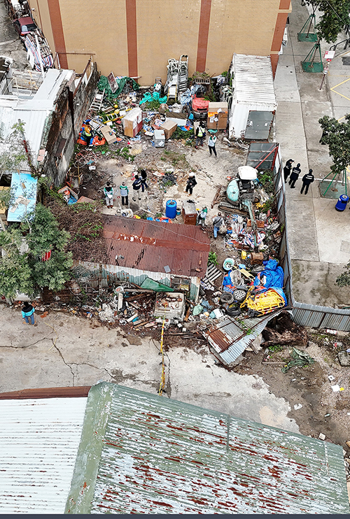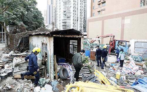 土地工務局表示,收回的土地面積約695平方米,現場有加建的金屬支架及鐵篷,用作擺放貨櫃及機械設備,並被人以金屬圍板、混凝土牆及圍網圍封土地。局方早前展開騰空土地程序,要求非法佔用人於期限內騰空並歸還土地予特區政府。鑒於清遷期限屆滿,上述土地仍未被完全騰空及交還,特區政府採取聯合行動,騰空及收回該幅土地。.jpg)