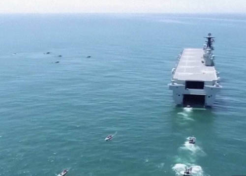 報道指,“海南號”兩棲攻擊艦編隊日前在某海域開展一場敵情威脅條件下、多軍兵種立體投送演練。在聯合作戰大體系、信息、火力支撐下,編隊成功將海、陸等兵力投送上岸。