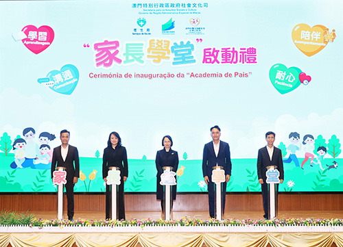 “家長學堂”啟動禮於昨日在鏡平學校(小學部)舉行,社會文化司司長柯嵐、社會文化司司長辦公室主任林媛、教青局局長龔志明、衛生局局長羅奕龍、社工局局長韓衛,教育委員會、青年事務委員會、婦女及兒童事務委員會委員,以及教育團體、家庭及社區服務團體、醫療團體、青年團體、家庭及社區綜合服務中心代表,非高等教育學校、家長會、托兒所代表等超過300人出席。