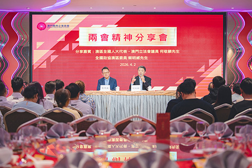為更好把握國家戰略機遇,會議期間專設“兩會精神分享會環節”,並邀請何敬麟及澳區全國政協委員蔡明威主講,重點向業界代表傳達全國“兩會”精神。與會人士學習2026年全國兩會關於高質量發展、粵港澳大灣區建設、體育產業與文旅體商融合、賽事經濟發展等重要部署,深入解讀國家支持澳門經濟適度多元、深化橫琴粵澳深度合作的政策紅利。大家一致認為,全國兩會為澳門體育產業指明方向,商會將引導會員企業把自身發展融入國家和澳門發展大局,以體育產業助力澳門長期繁榮穩定。