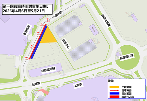 據公共建設局公佈,配合“溜冰路輕重型車輛超級充電站設計連建造工程”地下公共管線接駁工作,溜冰路往路氹變電站方向的行車道分兩階段對部分行車道進行臨時圍封,實施有限度通車。第一階段由昨日起至5月21日圍封溜冰路左側靠近物流中心一側行人道,並佔用鄰近車道約1.5米闊範圍作臨時行人通道,全長約110米。第二階段由5月22日至5月29日圍封溜冰路左側靠近物流中心一側一條行車道,全長約20米。