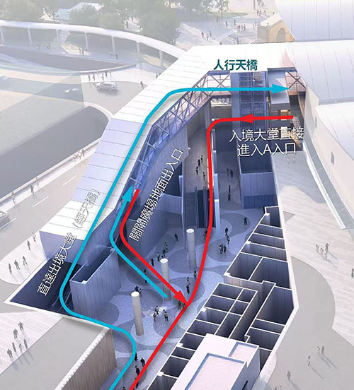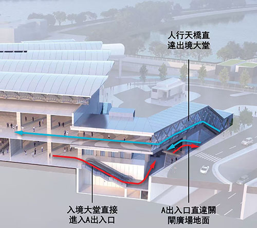 據介紹,輕軌東線ES1站關閘邊檢大樓連接通道設置在關閘廣場現有的旅遊巴停泊區,通過地下通道及天橋,與關閘邊檢大樓直接相連,實現關閘邊檢大樓與輕軌東線以至現時氹仔線的無縫銜接;通過打造片區綜合交通樞紐,實現客流無縫接駁,加強出行的便利性。連接通道的總建築面積約6,100平方米,設有地下一層及地面建築,地下部分包括地下行人通道、商業空間、洗手間及無障礙等設施;地面建築部分包括輕軌與關閘邊檢大樓離澳大堂連接天橋等附屬設施。