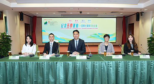 紀念“五四運動”107周年系列活動新聞發佈會於昨日下午3時在教青局仲尼堂舉行,教青局局長龔志明、紀念“五四”青年節系列活動籌備委員會主席鄧文基、教青局青年廳廳長張敏輝、紀念“五四”青年節系列活動籌備委員會副主席團表陳昭怡出席,介紹相關詳情。