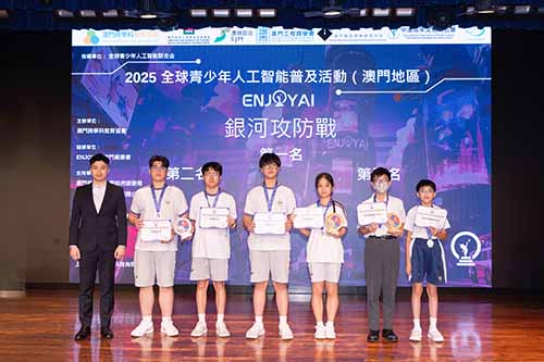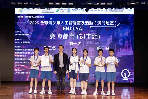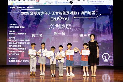 由澳門跨學科教育協會主辦、全球青少年人工智能聯合會指導的“ENJOY AI 2025 澳門賽區”10月19日於澳門培正中學順利舉行。活動匯聚本澳近200名來自幼稚園、小學及中學階段的學生,以人工智能與跨學科實作為核心,透過比賽激發創新思維、算法理解與工程實踐能力,進一步推動本澳STEAM教育發展與產學連結。
