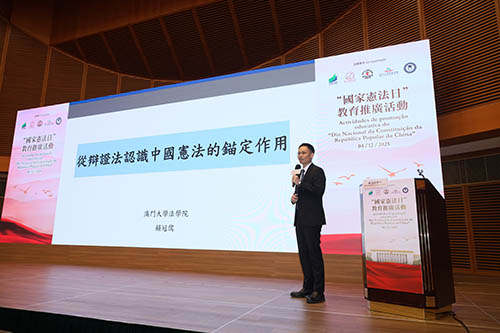 活動同時邀請澳門大學法學院高級導師、憲法與基本法研究中心研究員賴冠儒主講“從辯證法認識中國憲法的錨定作用”講座,並現場頒發感謝狀予參與普法教育展板的學校,以及嘉許全澳校際中學生《憲法》和《澳門基本法》知識線上比賽獲獎學生,初中組冠、亞、季軍分別由教業中學、同善堂中學(日校)及澳門坊眾學校奪得,而高中組冠、亞、季軍分別由教業中學、同善堂中學(日校)及菜農子弟學校奪得。