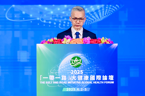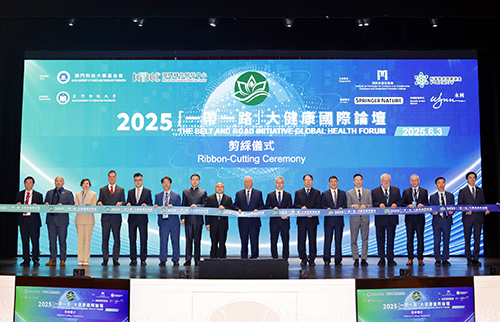 戴建業致辭表示,澳門特區政府將中醫藥大健康產業定為推動經濟適度多元發展的重點產業之一,致力於提升健康科技創新能力,拓展國際合作。回顧過去數年,澳門在中醫藥和健康科學等領域已經打下了堅實的基礎,高水平科研成果不斷湧現,並逐步形成了具有澳門特色的創新生態。其中,澳門科技大學與葡萄牙和內地高校已共同成立 “中國-葡萄牙人工智能與公共衛生問題‘一帶一路’聯合實驗室”,體現了澳門在國際科技合作中的重要角色,更標誌著中葡以及“一帶一路”沿線國家在健康科學的合作邁上新台階。未來,澳門將秉持開放的態度,與各界合作夥伴緊密聯手,並將充分發揮語言、文化和地區優勢,共同推動健康科技創新,為大健康產業築牢發展根基。
