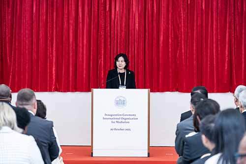 中國外交部副部長華春瑩出席開業儀式。她表示,短短5個月內,國際調解院實現了公約簽署、生效和開業運營,速度之快在國際組織建設史上十分罕見,充分表明國際調解院順應時代潮流,受到國際社會的廣泛支持。國際調解院理念與全球治理倡議高度契合,奉行和解合作和諧,堅持公平公正公道,秉持共商共建共享,倡導以人為本,注重務實導向,將為構建人類命運共同體注入法治正能量,也將助力香港打造“調解之都”。歡迎更多國家積極加入,充分利用國際調解院為和平解決國際爭端作出新貢獻。