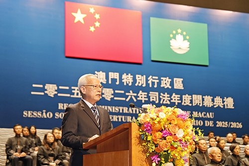 二是要捍衛司法公正,維護社會穩定。法槌之重,關乎民生疾苦,甚至人心向背。他希望各位司法同仁不忘初心,謹慎行使手中的權力,廉潔自律,奉公守法,始終做到盡忠職守。司法工作的價值,不僅在於對條文的精準適用,更在於對社會民生的深切關懷。司法人員既要堅守法治底線,亦需在處理案件過程中盡量以司法溫情化解社會矛盾,讓公平正義成為澳門繁榮穩定的基石。