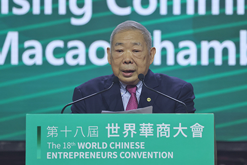 崔世昌致歡迎辭表示,澳門中總在獲得第十八屆世界華商大會主辦權後,積極謀劃、有序開展相關籌備工作,更增添策劃者、組織者和推動者的角色。乘著舉辦世界華商大會的東風,中總發揮平台中的平台作用,匯聚八方活力,開啟全球華商共謀合作的新篇章。