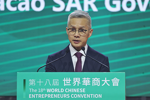 他介紹,本屆大會除按規定必有的歡迎晚宴、華商展覽、開幕式及主旨論壇、專題論壇、商務考察和商務配對外,也融入豐富的澳門文旅體育元素,讓與會者參加美高梅啤酒節、高爾夫球賽,觀看水舞間、《澳門2049》,參觀世遺歷史城區等,衷心希望各位華商和嘉賓們在三天會期內共商發展大計的同時,感受澳門中西文化薈萃以及世界旅遊休閒中心的獨特魅力。