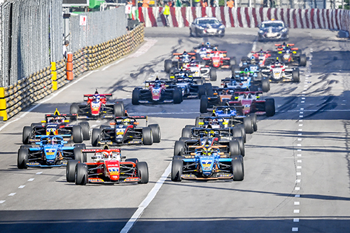 今屆大賽車壓軸賽事FR世界盃於昨日下午3時15分舉行起步禮,行政長官岑浩輝在大賽車組委會主席、社會文化司司長柯嵐等人陪同下,到賽道主持醒獅點睛及起步禮,並與參賽車手逐一握手打氣。