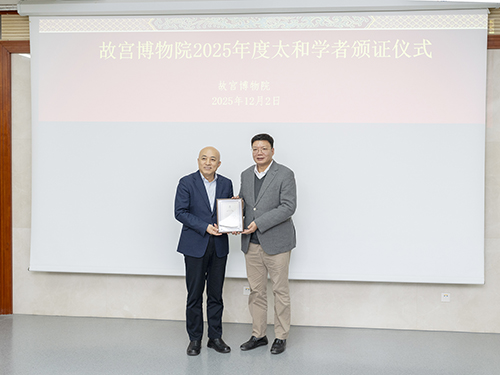 【本報訊】故宮博物院今年迎來建院100周年,早前遴選英國、意大利、馬爾他和中國澳門的四位中外學者作為故宮“太和學者”, 到故宮開展學術交流和研究。本月2日,入選故宮 “太和學者”計劃的首位港澳地區學者趙強獲故宮博物院院長王旭東頒發證書。期間,趙強向與會專家學者分享了克拉克瓷與汕頭器研究成果,王旭東與故宮博物院副院長王跃工聆聽了講座。