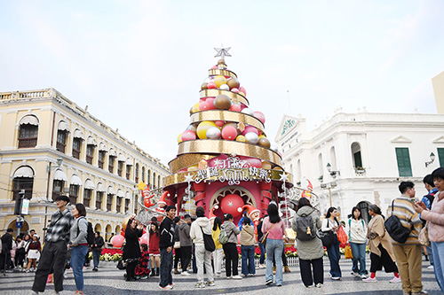 昨日聖誕節氣溫驟降,但遊人熱情未受寒冷影響,中區一帶旅客絡繹,有一家大小溫馨出行,亦有情侶把臂同遊。為增添聖誕氣氛,市政署早前已在全澳各區不同地點及街道裝設聖誕燈飾,議事廳前地和塔石廣場聖誕市集擺放了大型聖誕裝置,吸引不少居民和遊客到場打卡拍照。