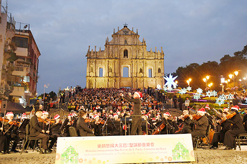 另外,由文化局主辦、澳門樂團有限公司承辦的“樂韻悠揚大三巴”音樂會,昨日聖誕節傍晚6時及7時在大三巴牌坊前地上演,澳門樂團攜手本地合唱團隊演繹多首充滿節日氣氛的佳節曲目,與在場人士共慶佳節。