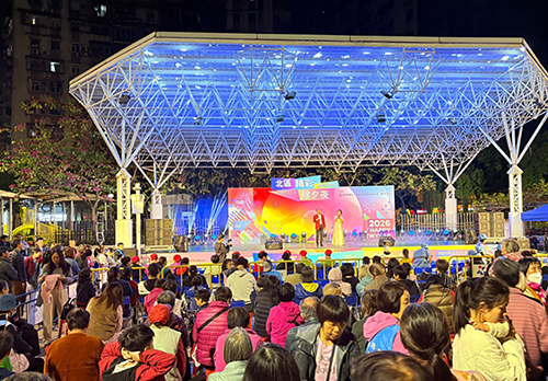 在辭舊迎新之際,不少旅客專程來澳體驗跨年氣氛,昨晚中區大三巴牌坊、議事亭前地及金光大道一帶光影璀璨,三五知己或一家大細結伴同行,其樂融融。此外,祐漢公園、三盞燈圓形地和筷子基北灣休憩區有坊會舉辦除夕倒數活動,不少居民一家大細到場,共慶2026年來臨。