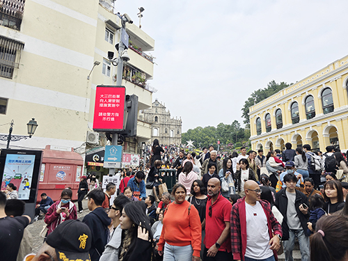 昨日中午,關閘廣場訪澳旅客大軍壓境,旅遊巴停泊區候車客大排長龍,的士和地下巴士站同樣候車人數眾多。下午,中區一帶人流增多,新馬路、南灣大馬路及殷皇子馬路交界人流密集,治安警先後於下午2時15分及5時20分實施人潮管制措施。人潮管制期間,大三巴街行人只可單向上行前往牌坊,並取道周邊的街巷如大關斜巷、關前後街、高園街等離開。此外,關前後街的行車道亦同時封閉,車輛從營地大街駛至該路口時必須左轉入草堆街,同時因應大三巴實施單向人潮措施,車輛不能由高園街左轉大三巴斜巷。有關人潮管制措施及後於下午4時半及6時10分取消。