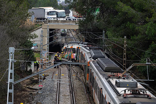 據報道,其中一起事故發生在巴塞羅那省赫利達鎮附近。鐵道旁的擋土牆在一列通勤列車經過時突然倒塌,造成列車脫軌,車頭駕駛室受損。