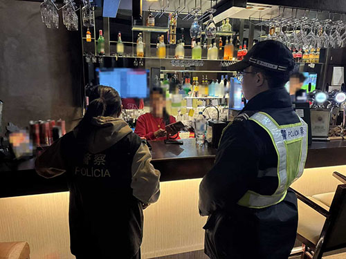【本報訊】在警察總局統籌下,治安警察局於持續進行“冬防行動2026”,以維護本澳良好治安環境。治安警察局轄下澳門警務廳、海島警務廳、情報廳及交通廳共派出44名人員,日前分別巡查澳門各區多間賓館、餐廳及酒吧,並進行不定點查車行動,以預防及打擊各種不法行為和犯罪活動。
