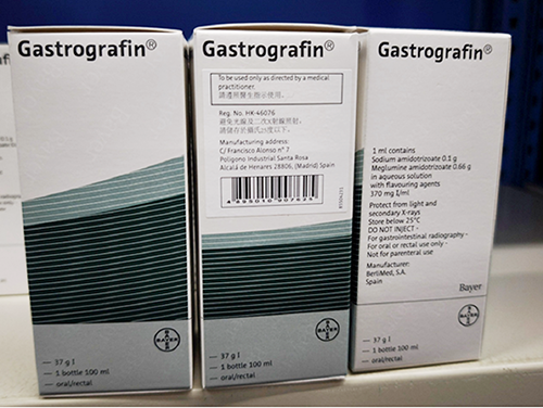 據藥物監督管理局公佈,上述藥物屬處方藥物,是一種用於胃腸道檢查的造影劑。根據入口商提供的資料,受影響批次藥物曾供應予本澳仁伯爵綜合醫院、離島醫療綜合體北京協和醫院澳門醫學中心及私立醫院,藥物監督管理局已指示入口商跟進回收。醫療機構應立即停止使用受影響批次的藥物。