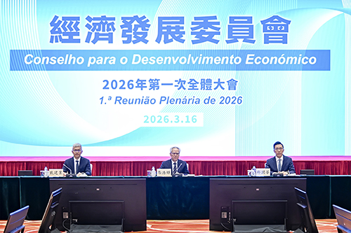 【本報訊】經濟發展委員會2026年第一次全體大會於昨日上午在中國與葡語國家商貿合作服務平台綜合體會議東廳舉行,大會由經濟發展委員會主席、行政長官岑浩輝主持。委員會副主席、經濟財政司司長戴建業在會上介紹了澳門經濟現況及發展策略,經濟及科技發展局局長邱潤華匯報了委員會近期的工作情況。會上,多位委員就澳門經濟及產業對接國家“十五五”規劃提出了意見和建議,氣氛熱烈。岑浩輝總結時感謝各委員的積極發言,並勉勵委員繼續群策群力,同心同德,共同推動澳門經濟穩步向前發展。