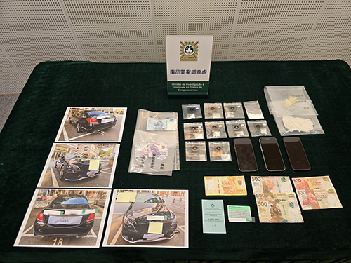 司警近日接獲情報,指有人涉嫌以人體藏毒的方式,跨境運毒來澳,隨即鎖定目標人物馬某並進行部署。本月17日晚10時許,馬某從香港經港珠澳大橋澳門口岸入境,當其前往口岸停車場取車時,被埋伏的警員當場拘捕,警員在其身上及私家車內搜獲1小包重約0.65克的氯胺酮、2張沾有懷疑毒品粉末的紙幣、1個沾有懷疑毒品粉末的透明膠袋,以及折合約2,700澳門元懷疑毒資。