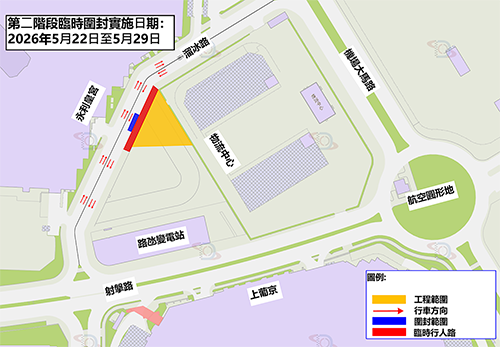 據公共建設局公佈,配合“溜冰路輕重型車輛超級充電站設計連建造工程”地下公共管線接駁工作,溜冰路往路氹變電站方向的行車道分兩階段對部分行車道進行臨時圍封,實施有限度通車。第一階段由昨日起至5月21日圍封溜冰路左側靠近物流中心一側行人道,並佔用鄰近車道約1.5米闊範圍作臨時行人通道,全長約110米。第二階段由5月22日至5月29日圍封溜冰路左側靠近物流中心一側一條行車道,全長約20米。