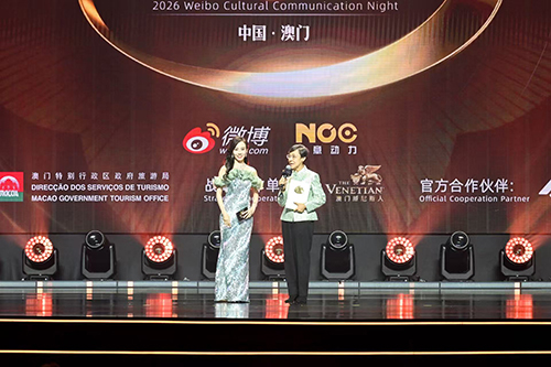 【本報訊】由微博主辦,新意動力承辦,金沙中國為戰略合作單位,澳門旅遊局為支持單位,以“金聲匯流年•鎏光共潮生”為核心主題的“2026微博文化交流之夜-中國澳門站”,於本月11日在威尼斯人綜藝館舉辦。活動打造“紅氈高光”“頒獎榮耀”“藝術展演”三大核心板塊,邀請內地與澳門的知名文化學者、資深藝術家、青年文化代表以及非遺傳承人齊聚濠江,通過節目展演、文化對話、非遺展示、青年共創等多種豐富形式,全方位、多角度展現兩地文化的交融共生與蓬勃發展活力。