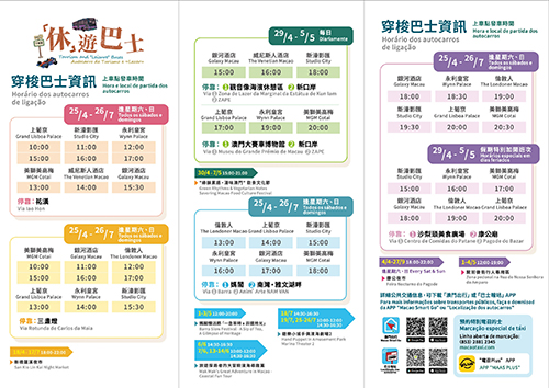 據介紹,“休”遊巴士將在休閒企業原有的穿梭巴士路線上,於途經社區設置合適的站點,讓旅客能便捷到訪社區,探索地道美食和特色店舖,體驗豐富的本地特色文化,為中小商戶開拓客源,推動社區經濟發展。同時,“休”遊巴士沿線覆蓋逾千家商戶,藉著將穿梭巴士的落客站點適當延伸至本澳不同社區,引導旅客深入其中,並配合各區的多元活動,包括“五一”假期行人專用區、媽閣慢活節和康公夜市等引流拓客,進一步盤活社區經濟。