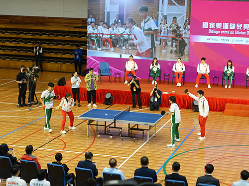 國家奧運健兒運動員代表團本月初展開訪澳行程,期間出席“國家奧運健兒與澳門青少年運動員真情對話”活動,與本澳運動員及青年學生交流,並分別進行了藝術體操及乒乓球互動。