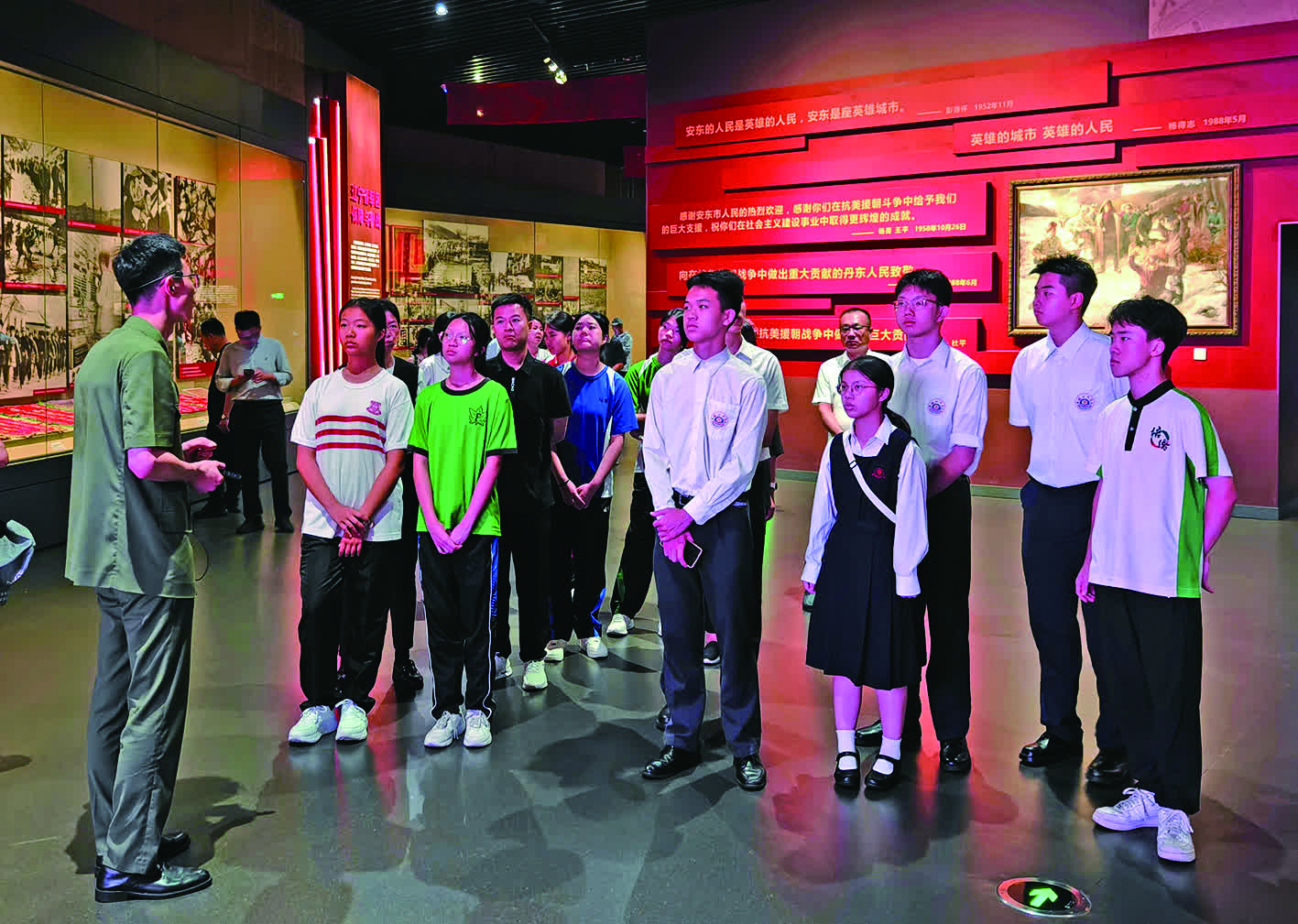 團員徐霖茵形容,抗美援朝紀念館外矗立的志願軍戰士雕像姿態英勇、眼神堅定,此刻她感受到的不僅是藝術的渲染力,更有直達心靈的震撼。在參觀過程中,她聽聞了許多鮮為人知的年輕志願軍的故事,他們正值青春年華,卻毅然奔赴戰場,保家衛國,叫人肅然起敬。