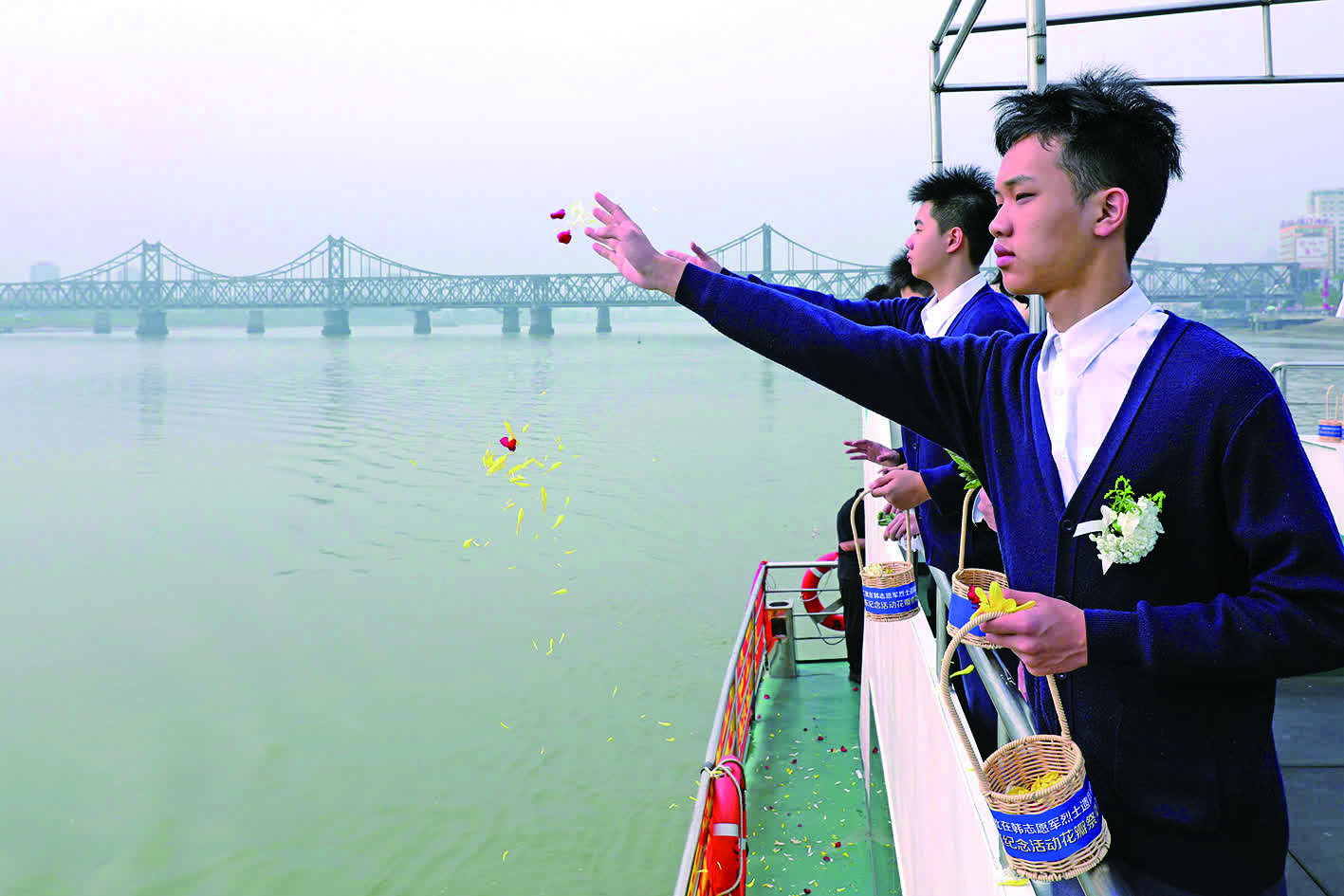 參團學生都宗陽憶述,置身“歸航號”紀念船上的花瓣祭奠儀式,周圍縈繞莊嚴的音樂,內心感到無比沉重,片片花瓣寄託吾輩對英烈的無盡懷念與感激,戰爭的殘酷與志願軍烈士的崇高精神瞬間具象化,觸動人心。
